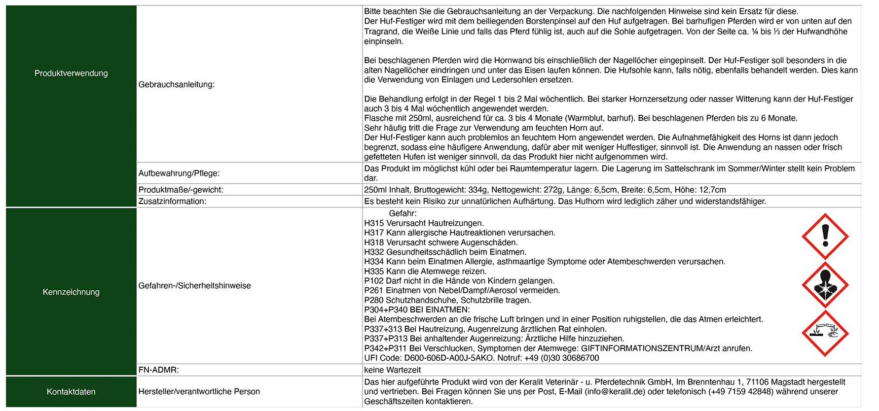 - schützt, pflegt, festigt und vermindert das Ausbrechen und den Hornabrieb